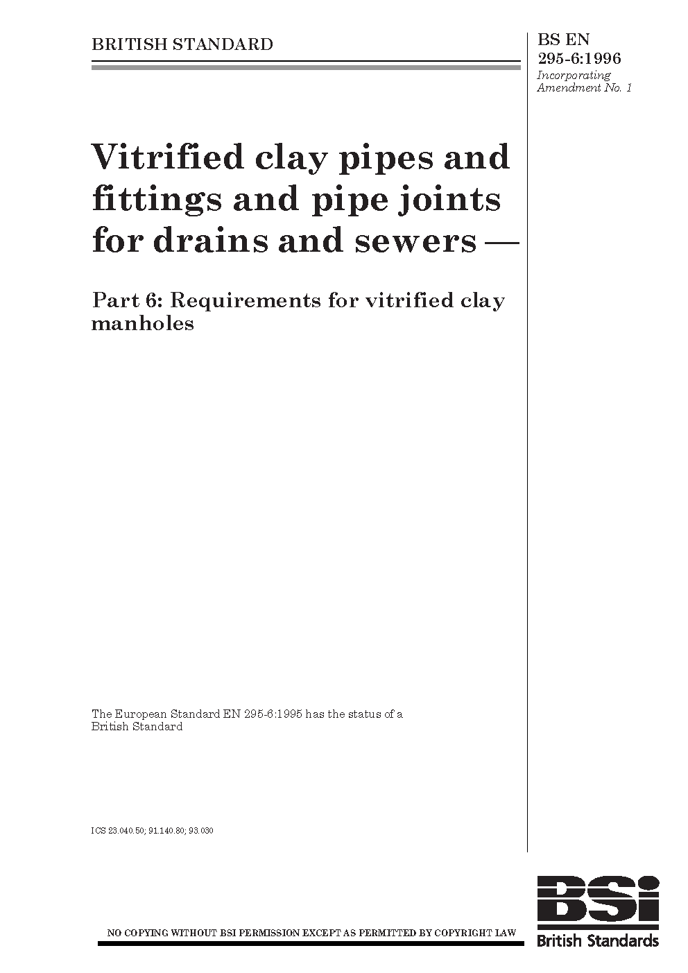 Vitrified clay pipes and fittings pipe joints for drains sewers Requirements vitrified manholes