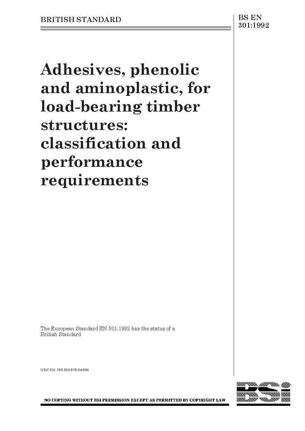 Adhesives, phenolic and aminoplastic, for load-bearing timber structures: classification and performance requirements
