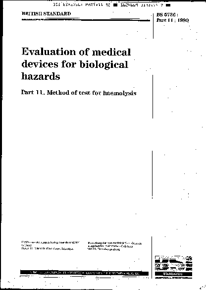 Biological evaluation of medical devices Selection tests for interactions with blood