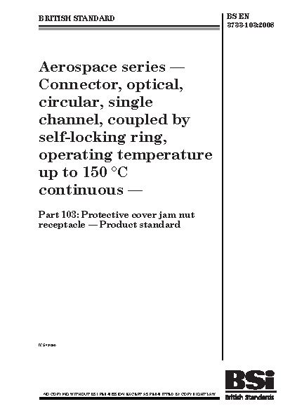 Aerospace series. Connector, optical, circular, single channel, coupled by self-locking ring, operating temperature up to 150°C continuous Protective cover jam nut receptacle. Product standard