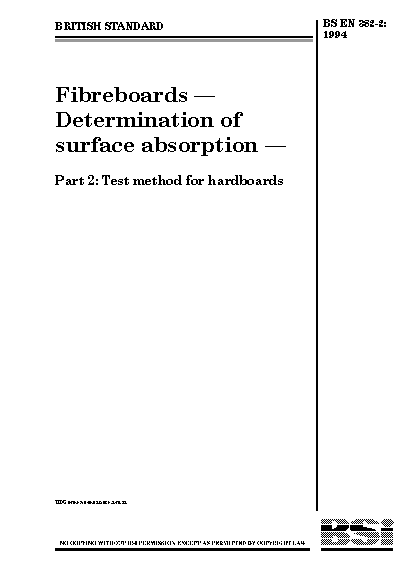 Fibreboards. Determination of surface absorption Fireboards. absorption. Test methods for hardboards