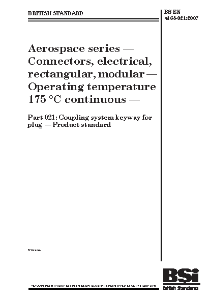 Aerospace series. Connectors, electrical, rectangular, modular. Operating temperature 175°C continuous Coupling system keyway for plug. Product standard