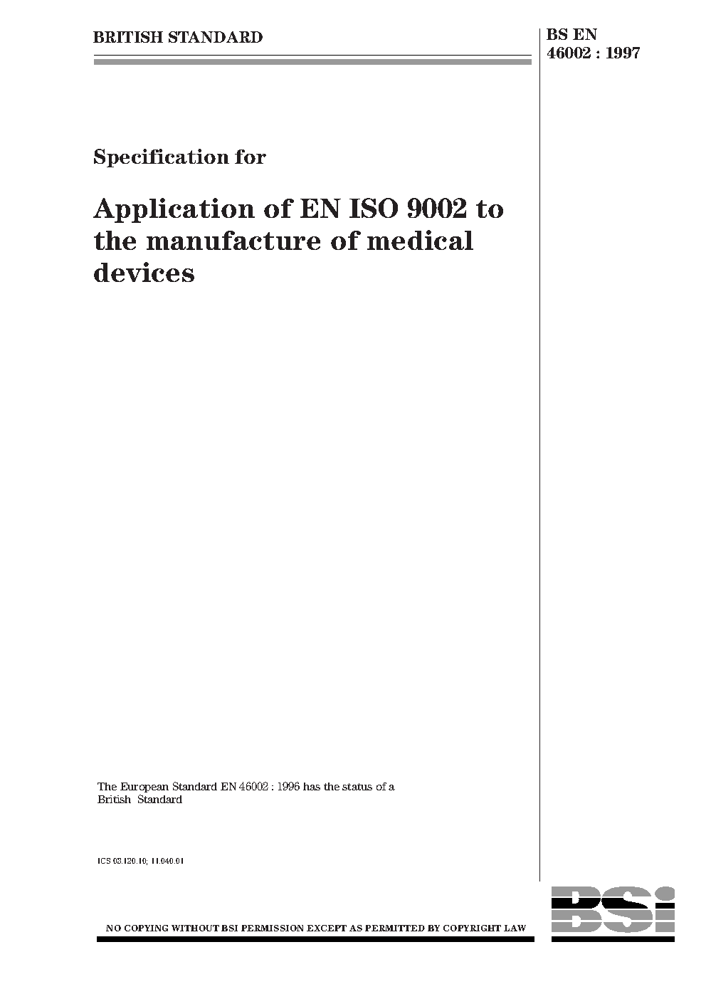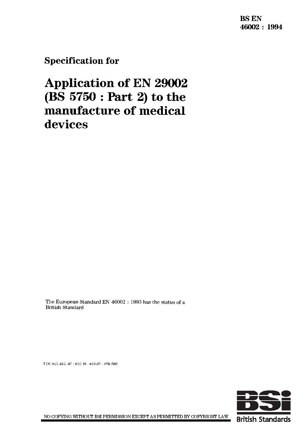 Application of EN 29002 (BS 5750:Part 2) to the manufacture of medical devices