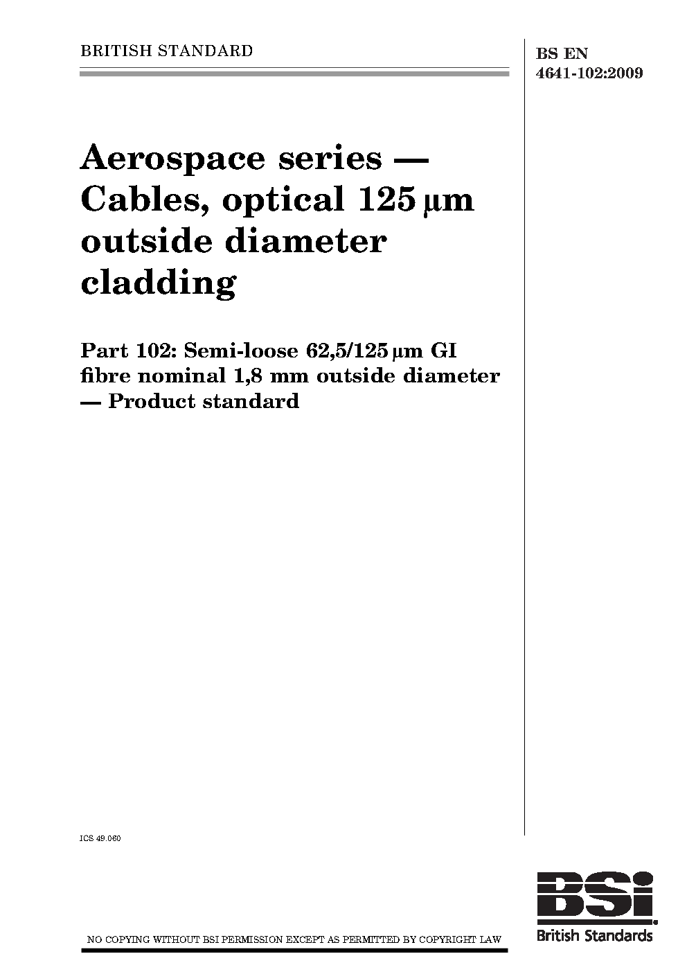 Aerospace series. Cables, optical 125 µm diameter cladding Semi-loose 62,5 µm/125 GI fibre nominal 1,8 mm outside diameter. Product standard