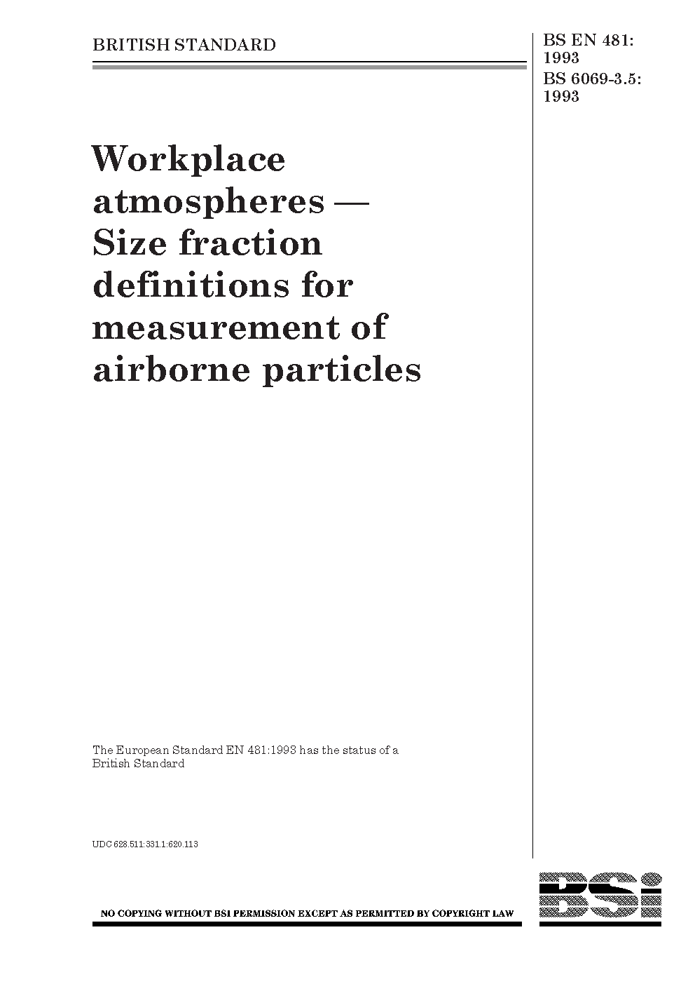 Workplace atmospheres. Size fraction definitions for measurement of airborne particles