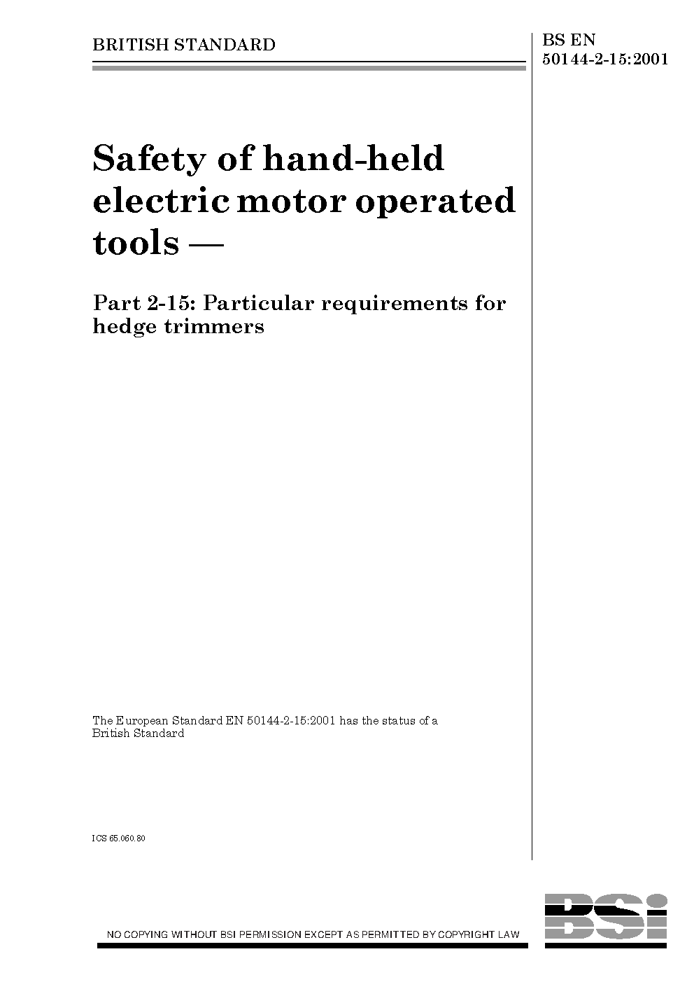 Safety of hand-held electric motor operated tools Particular requirements for hedge trimmers