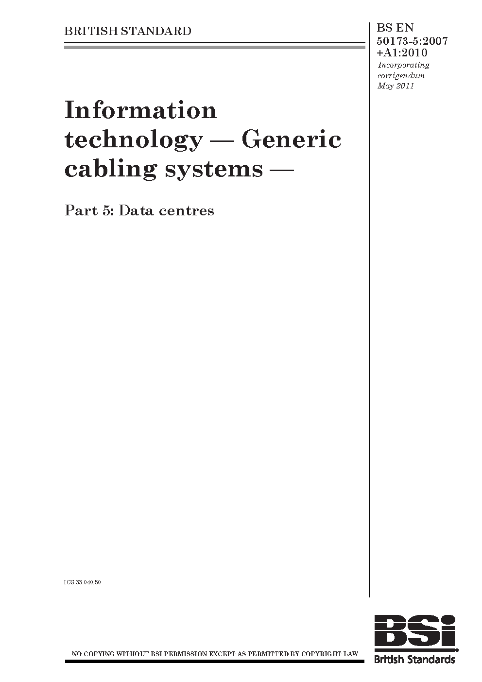 BS EN 50173-5:2007+A1:2010