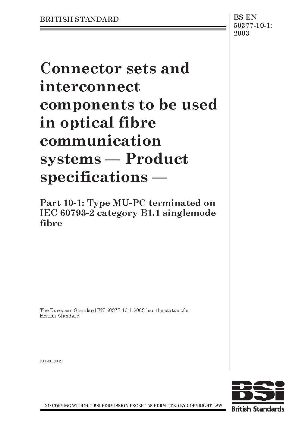 Connectors sets and interconnect components to be used in optical fibre communication systems. Product specifications Type MU-PC terminated on IEC 60793-2 category B1.1 singlemode