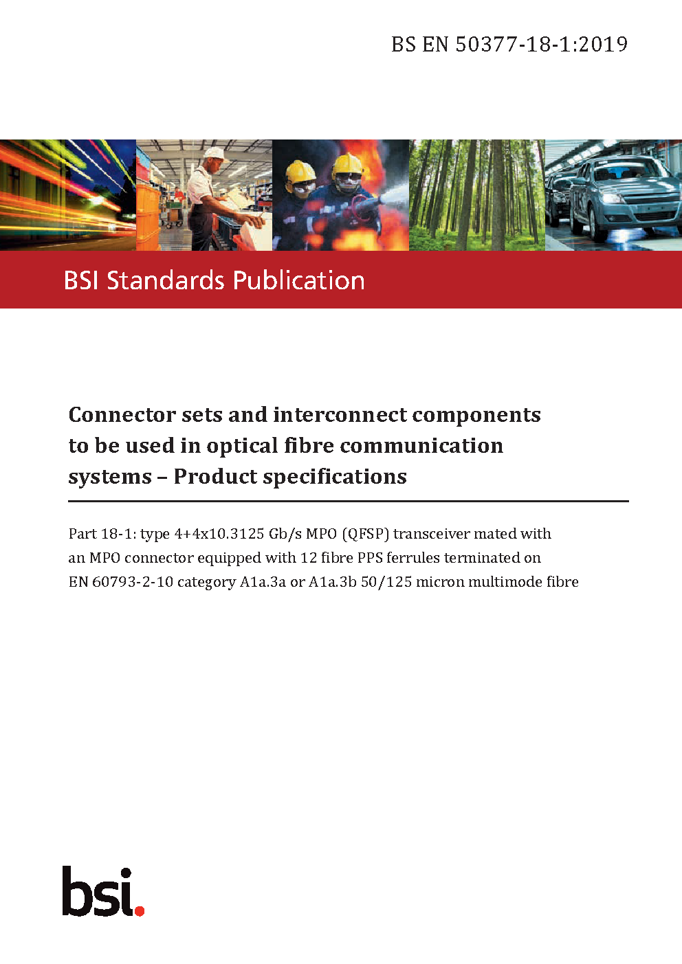 Connector sets and interconnect components to be used in optical fibre communication systems. Product specifications Type 4+4x10.3125 Gb/s MPO (QFSP) transceiver mated with an connector equipped 12 PPS ferrules terminated on EN 60793-2-10 category A1a.3a or A1a.3b 50/125 micron multimode