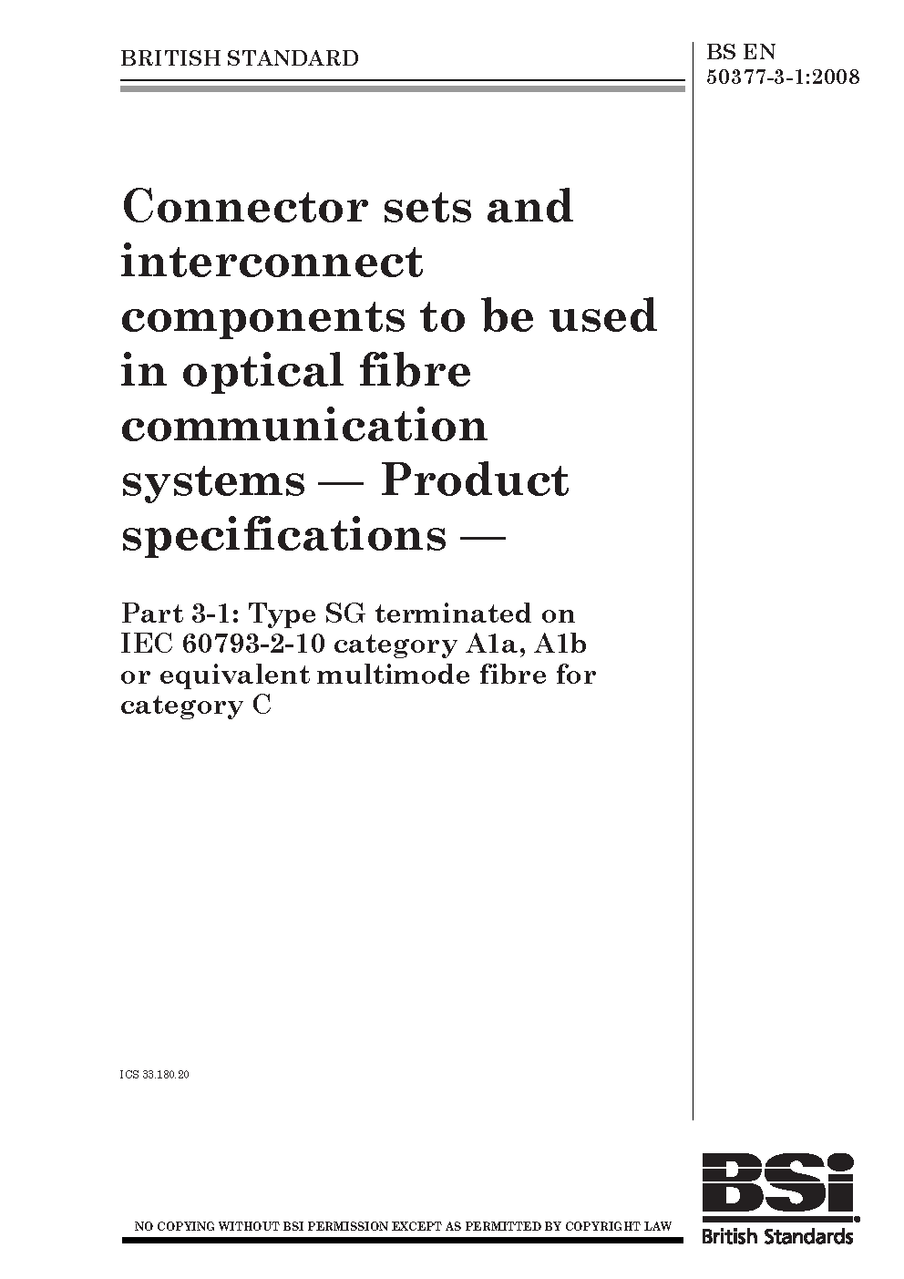 Connectors sets and interconnect components to be used in optical fibre communication systems. Product specifications Type SG terminated on IEC 60793-2 category A1a A1b multimode