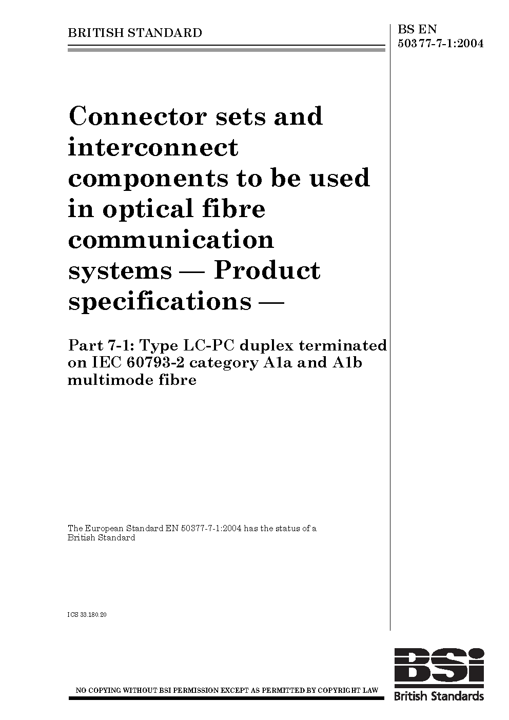Connector sets and interconnect components to be used in optical fibre communication systems. Product specifications Type LC-PC duplex terminated on IEC 60793-2 category A1a A1b multimode
