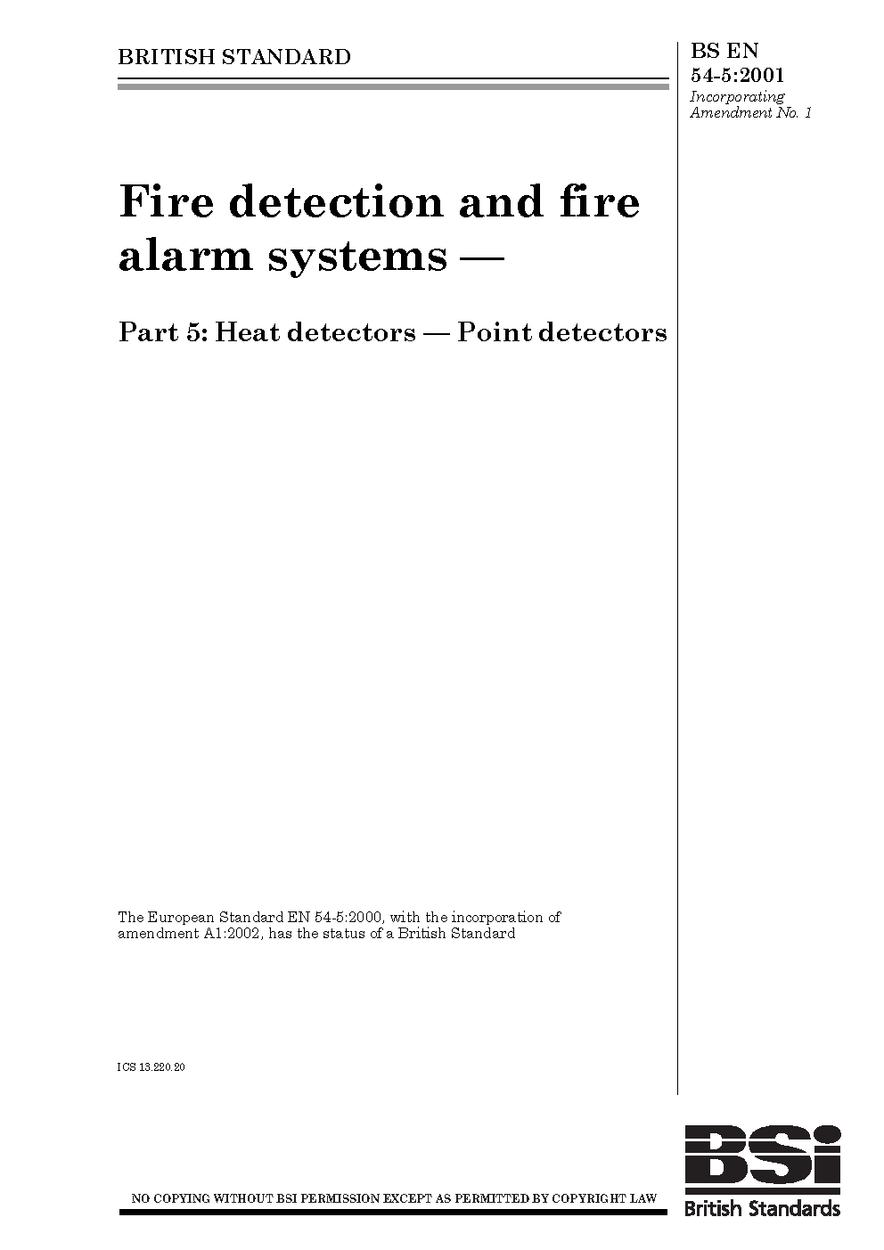 BS EN 54-5:2001