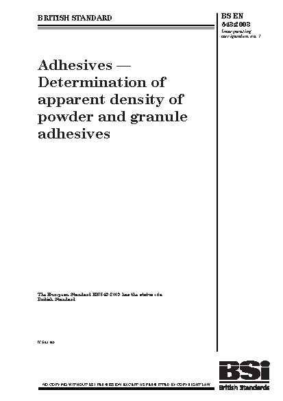 Adhesives. Determination of apparent density of powder and granule adhesives