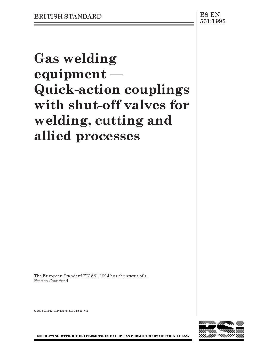 Gas welding equipment. Quick-action couplings with shut-off valves for welding, cutting and allied processes