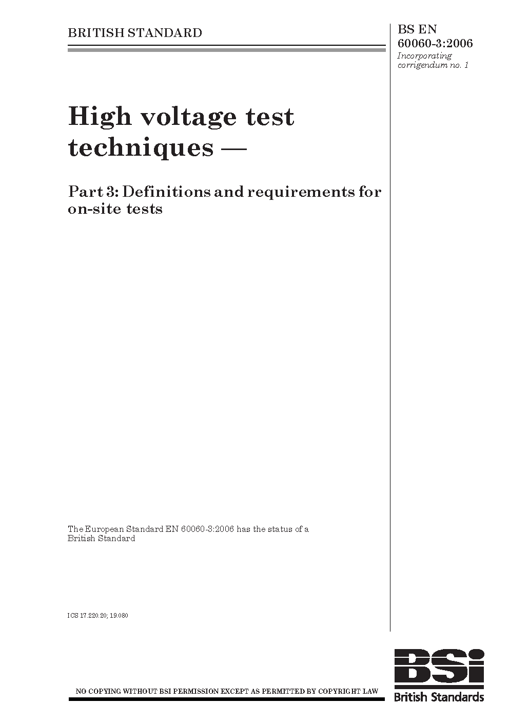 Impulse-voltage tests;Electrical measuring instruments;Electric current;Field testing;Testing conditions;Definitions;Approval testing;Circuits;Electrical testing;High-voltage tests;Voltage measurement