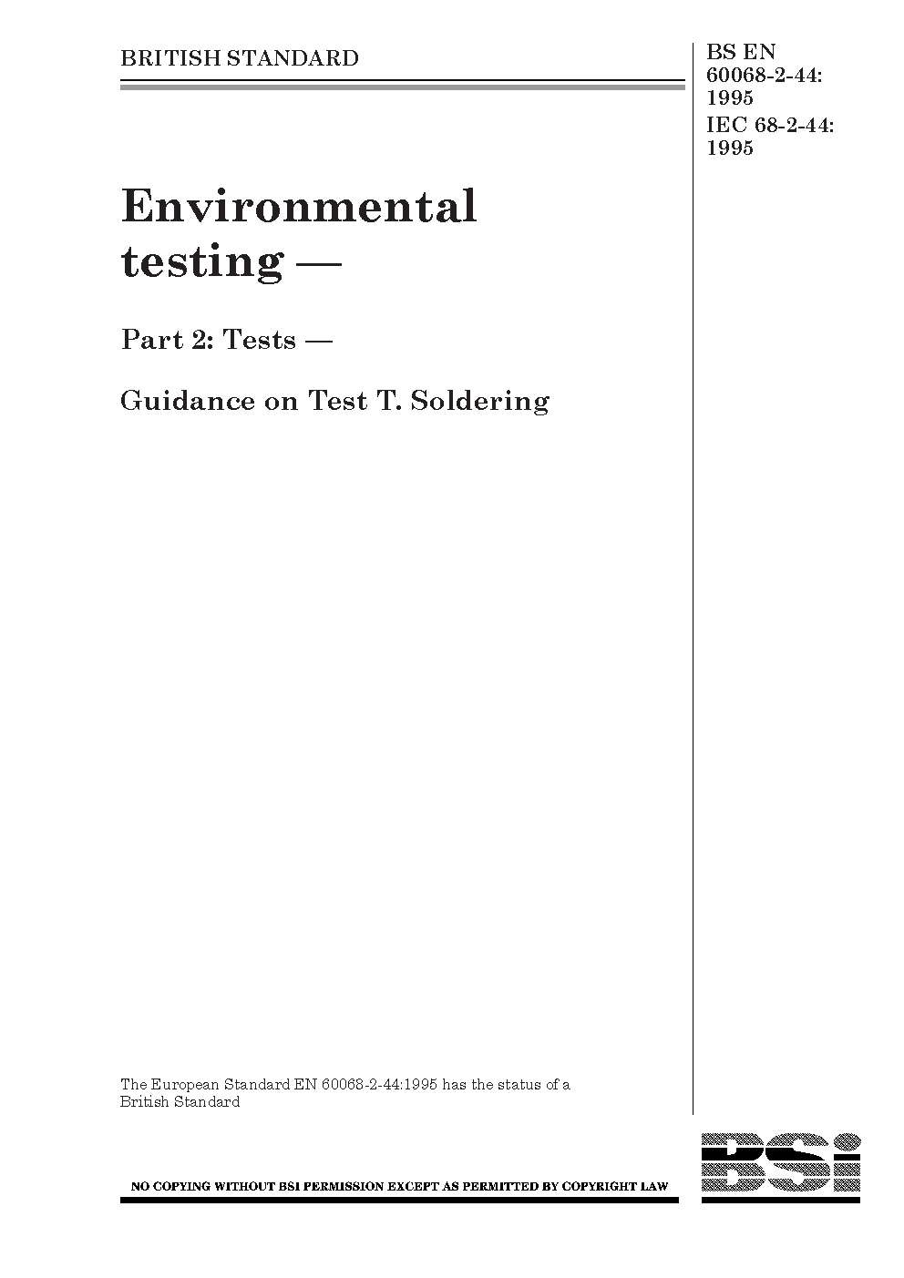 Environmental testing. Test methods Tests. Guidance on T. Soldering