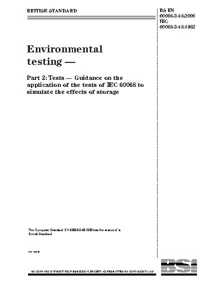 Environmental testing. Test methods Guidance on the application of tests IEC 60068 to simulate effects storage