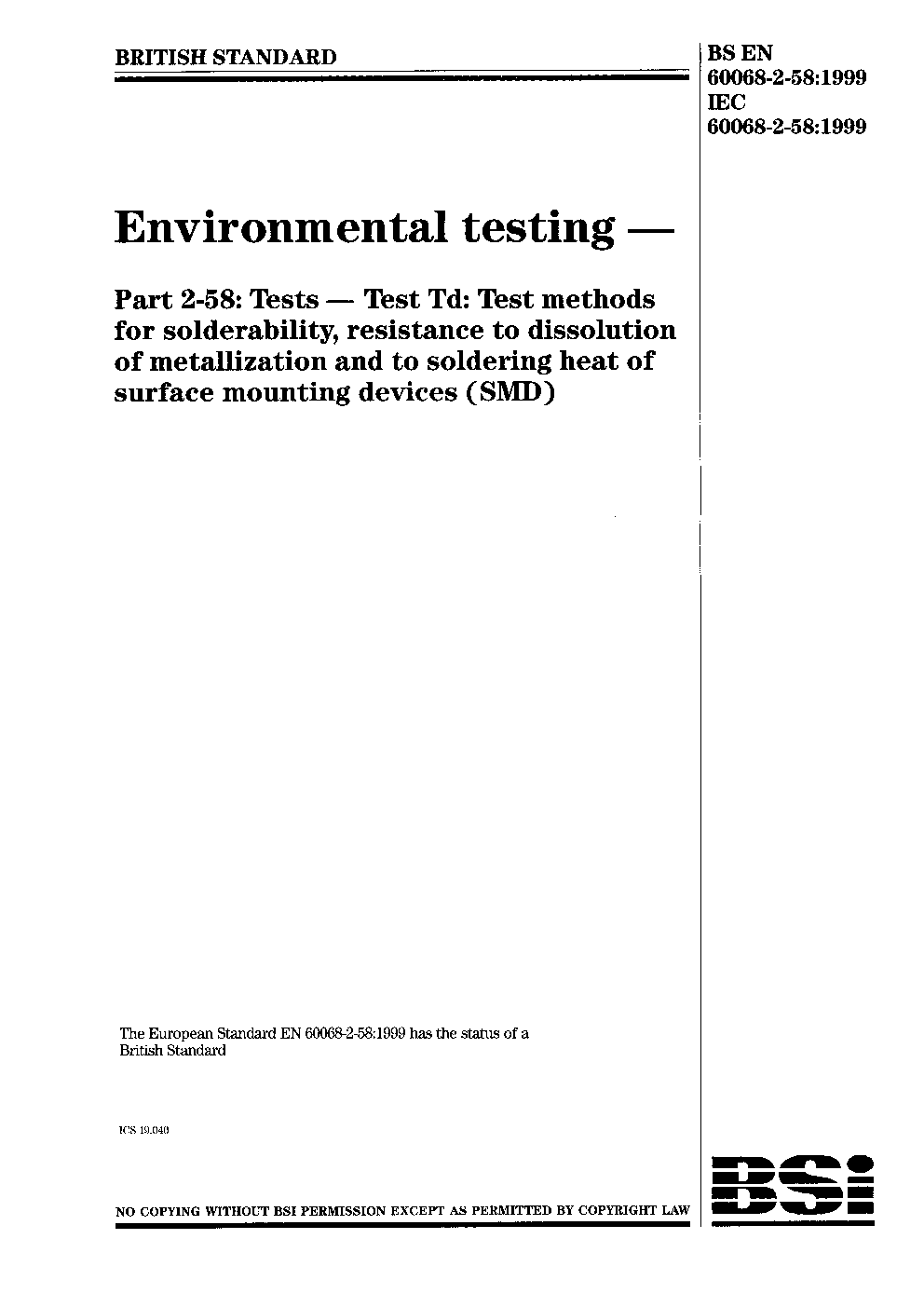 BS EN 60068-2-58:1999