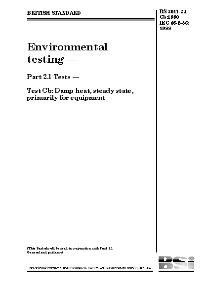 Environmental testing. Test methods Cab. Damp heat, steady state