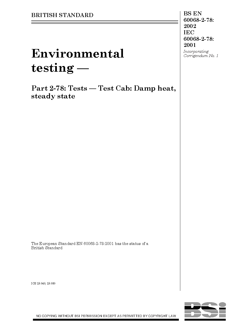 Environmental testing Tests. Test Cab: Damp heat, steady state
