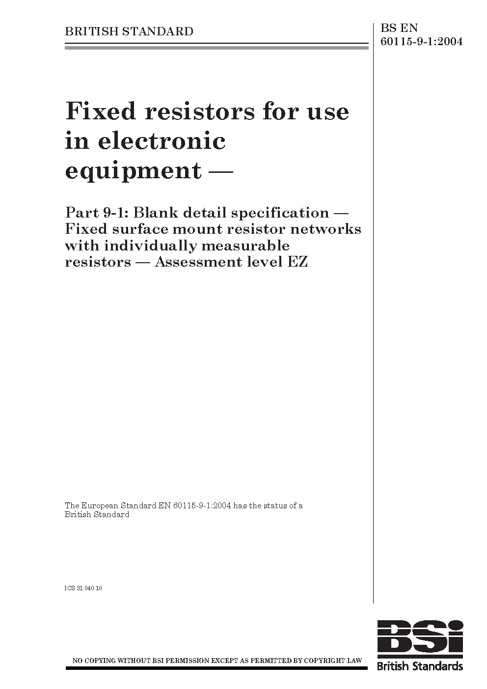 Fixed resistors for use in electronic equipment Blank detail specification. surface mount resistor networks with individually measurable Assessment level EZ