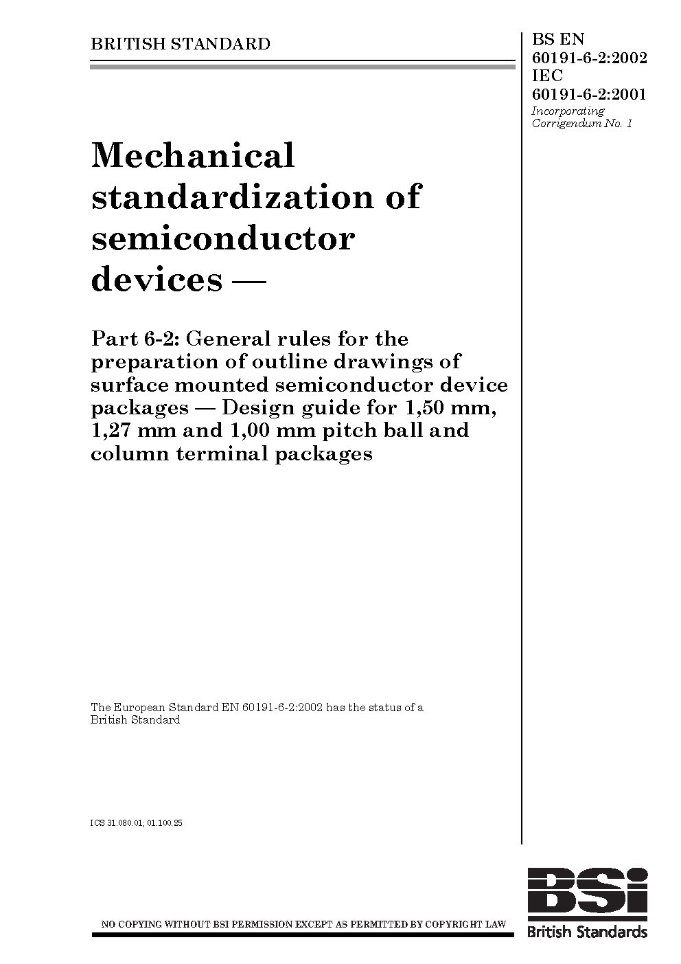 Mechanical standardization of semiconductor devices. General rules for the preparation outline drawings surface mounted device packages Design guide 1,50 mm, 1,27 mm and 1,00 pitch ball column terminal