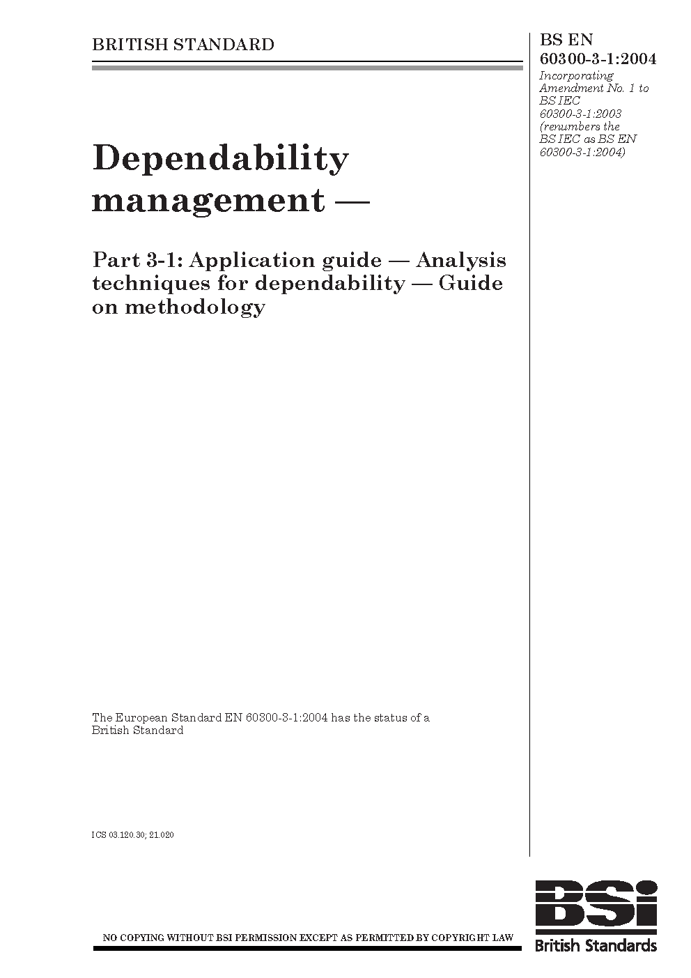 BS EN 60300-3-1:2004