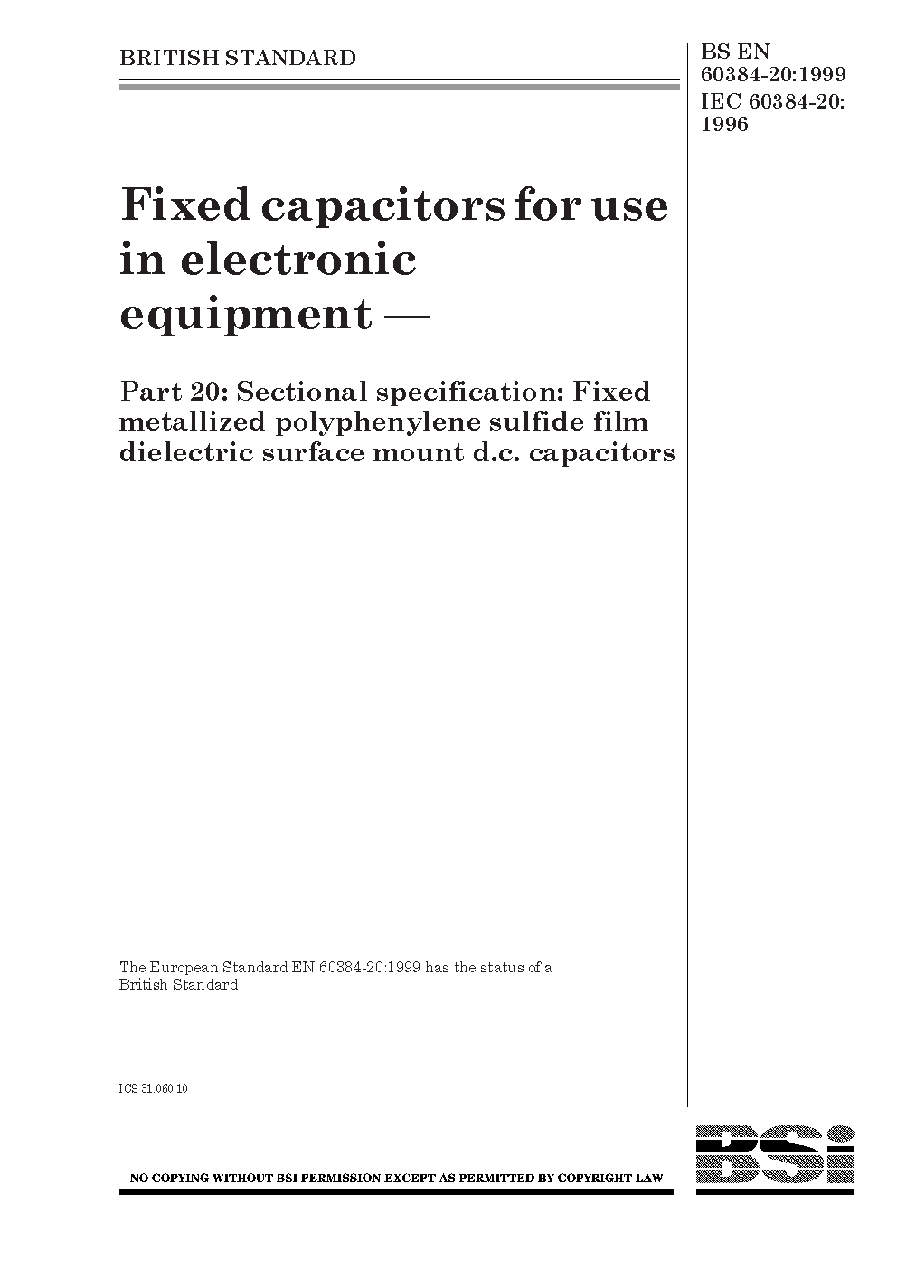 BS EN 60384-20:1999 - SET