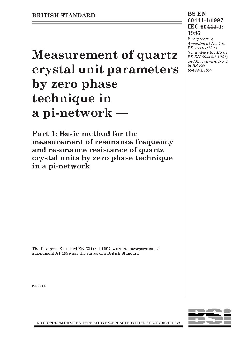 Measurement of quartz crystal unit parameters Basic method for the measurement resonance frequency and resistance units by zero phase technique in a p-network
