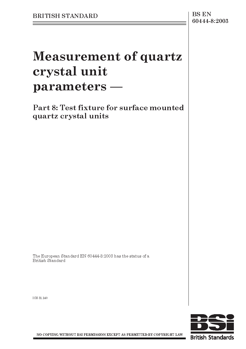 Measurement of quartz crystal unit parameters Test fixture for surface mounted units