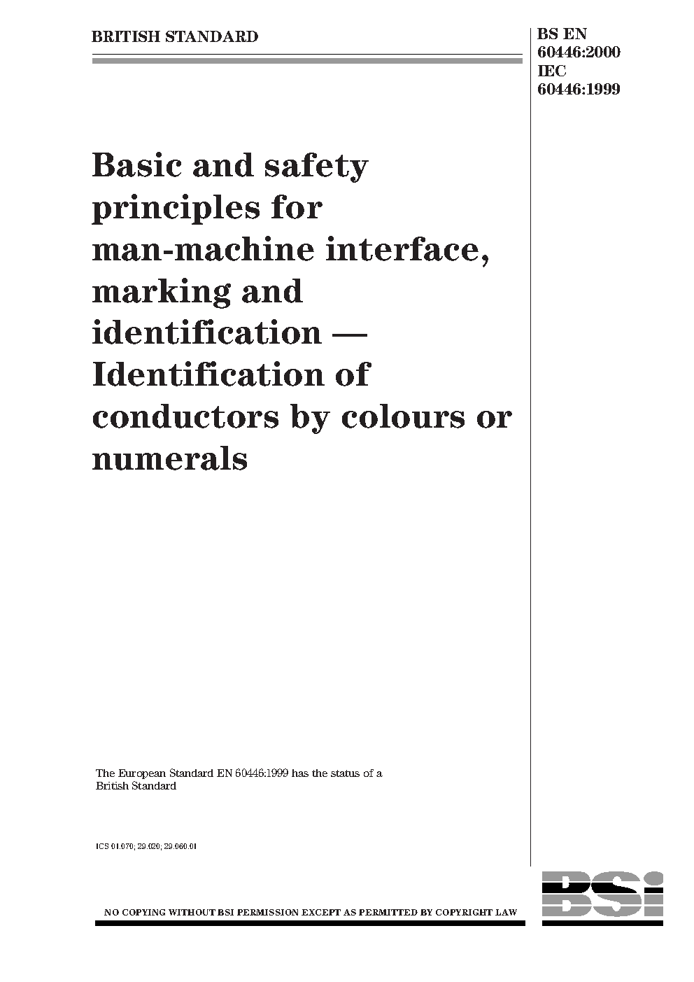 Basic and safety principles for man-machine interface, marking and identification. Identification of conductors by colours or alphanumerics