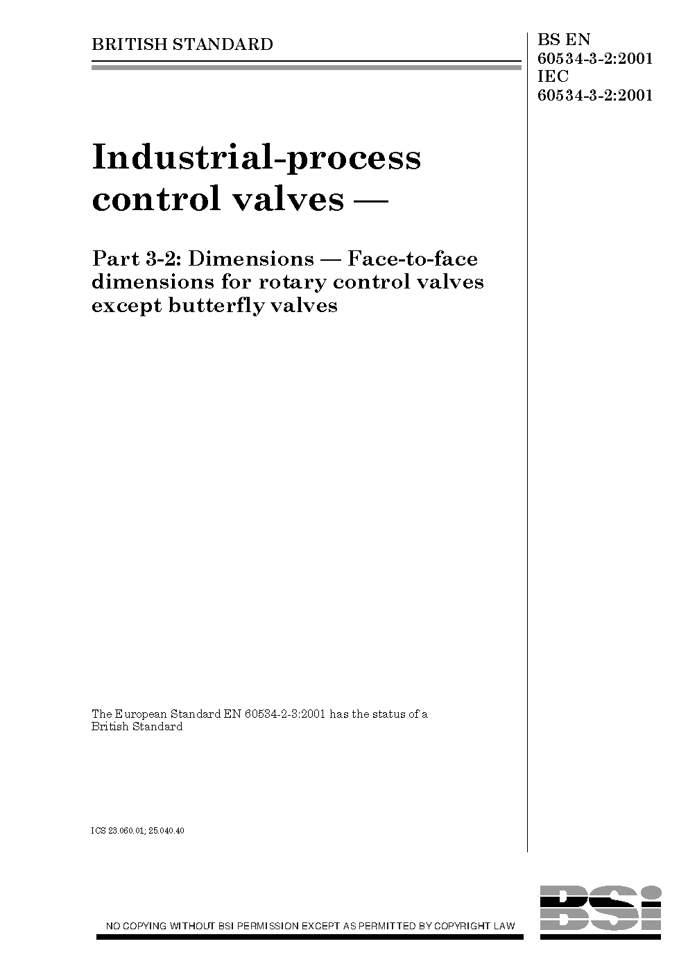 Industrial-process control valves. Dimensions Face-to-face dimensions for rotary valves except butterfly