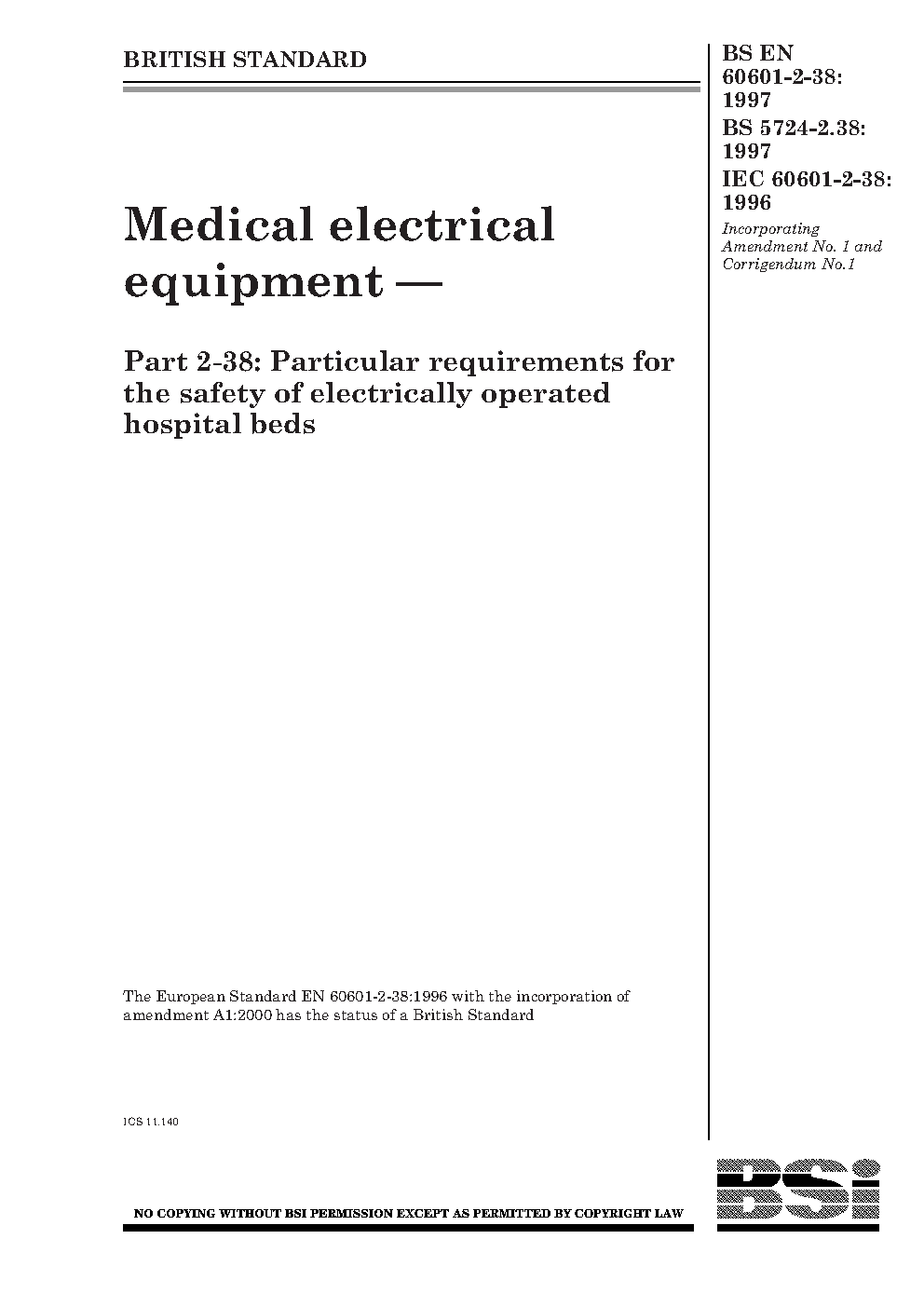 BS EN 60601-2-38:1997