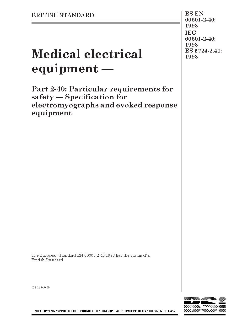 Medical electrical equipment Particular requirements for the basic safety and essential performance of electromyographs evoked response