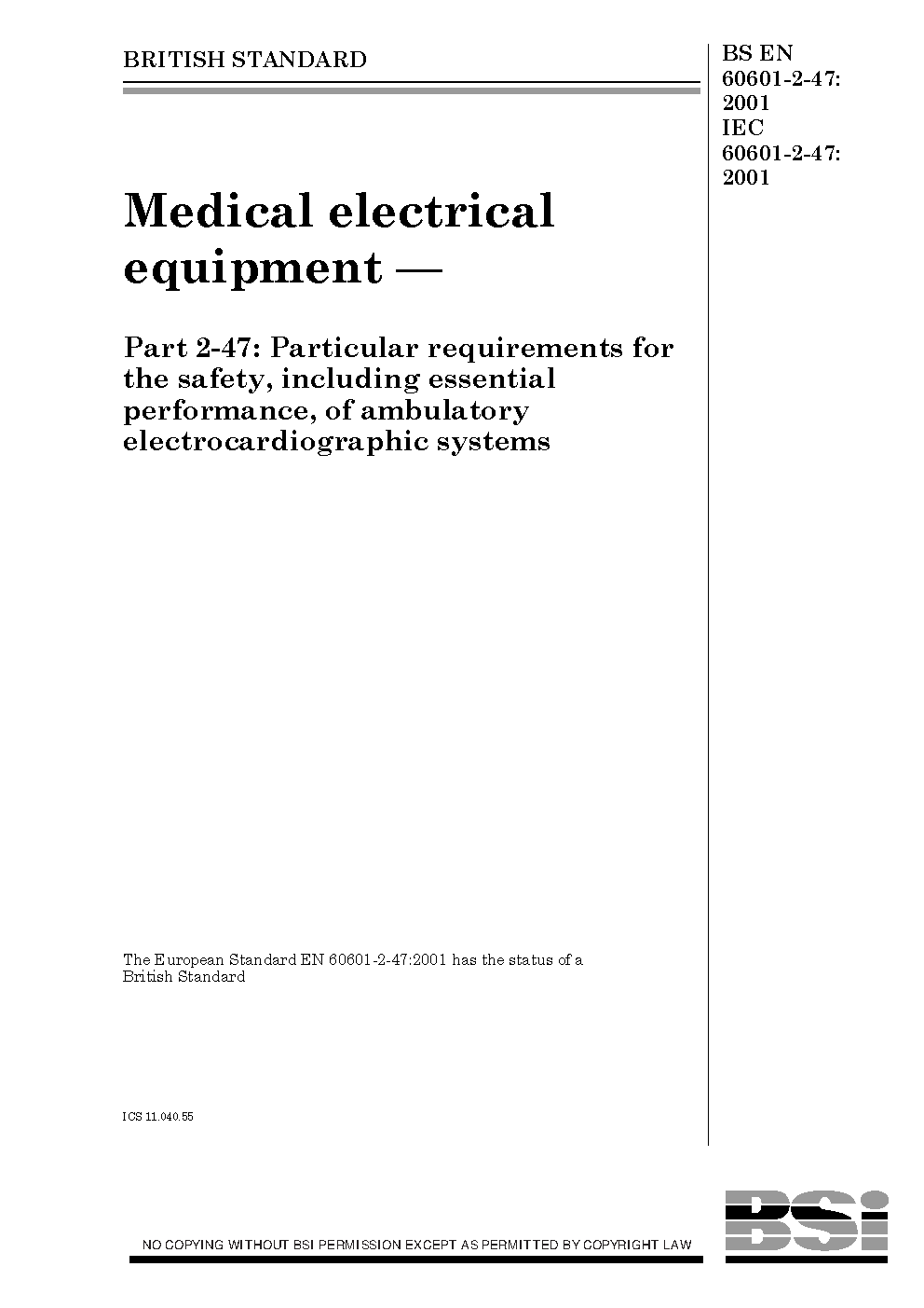 BS EN 60601-2-47:2001