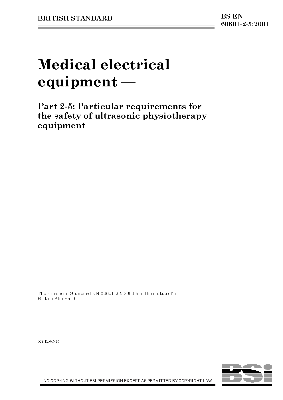 Medical electrical equipment. Particular requirements for safety the of ultrasonic physiotherapy equipment