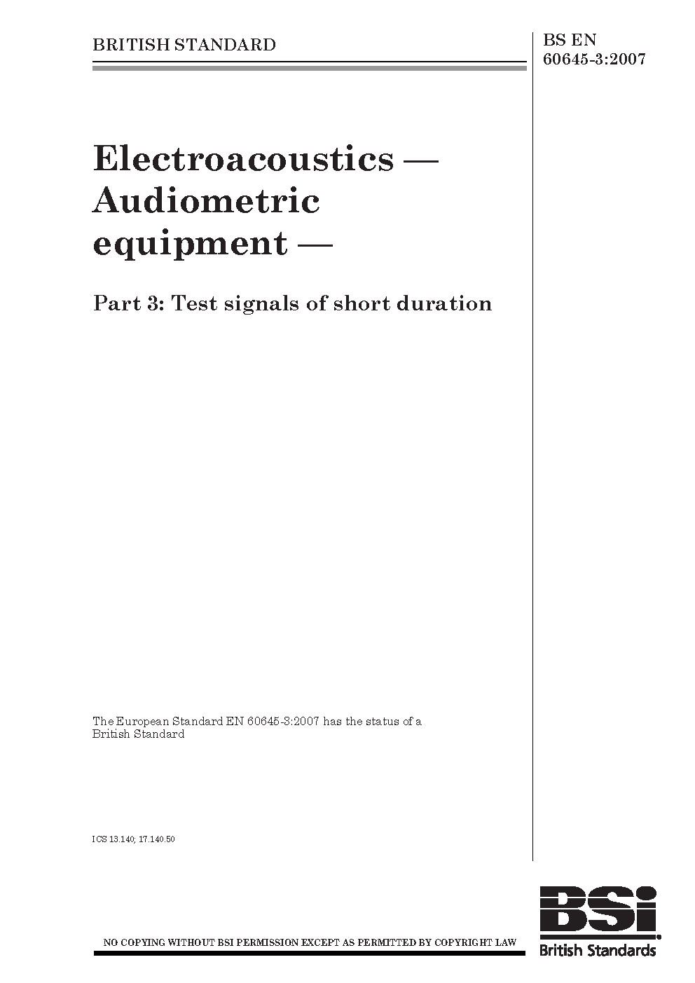 Audiometers Auditory test signals of short duration for audiometric and neuro-otological purposes