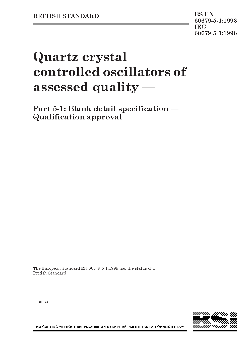 Crystals (electronic);Electrical properties of materials;Electrical equipment;Layout;Waveforms;Approval testing;Inspection;Piezoelectric devices;Quartz;Performance;Qualification approval;Power measurement (electric);Electronic equipment and components;Ordering;Acceptance (approval);Specification (approval);Oscillators;Crystal resonators;Ageing (materials);Voltage;Assessed quality;Immersion tests (corrosion);Electrical testing;Frequencies;Quality assurance systems;Detail specification