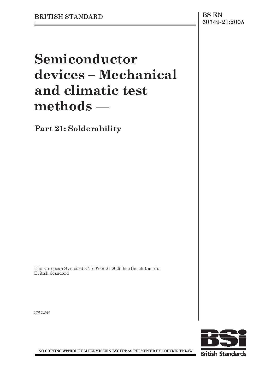 BS EN 60749-21:2005