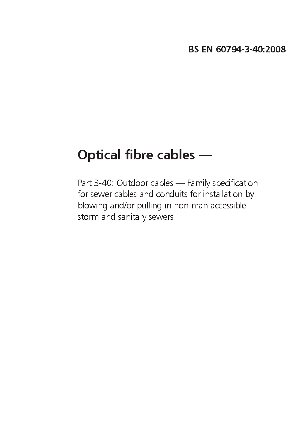 Optical fibre cables Outdoor cables. Family specification for sewer and conduits installation by blowing and/or pulling in non-man accessible storm sanitary sewers