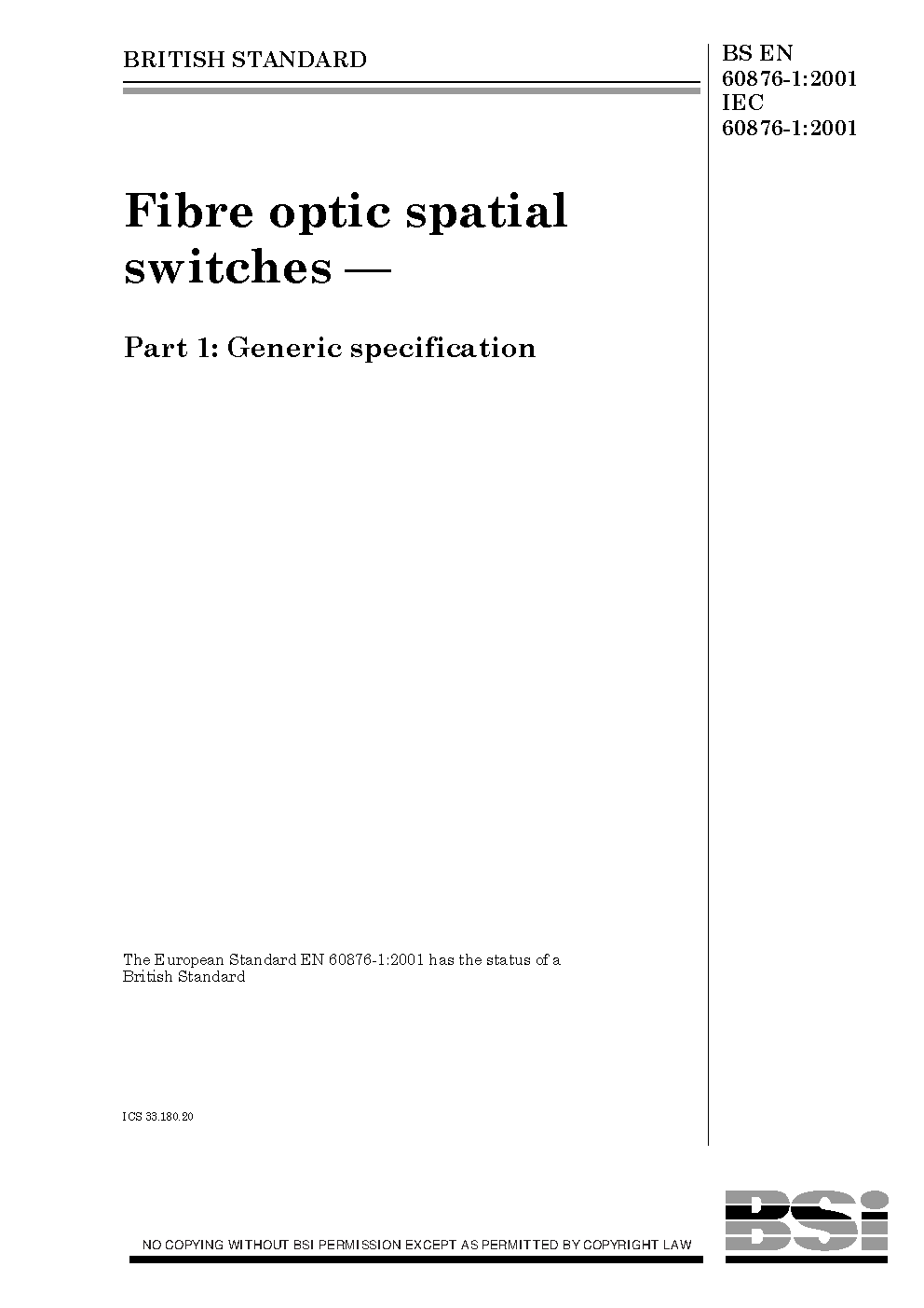 Fibre optic spatial switches Generic specification