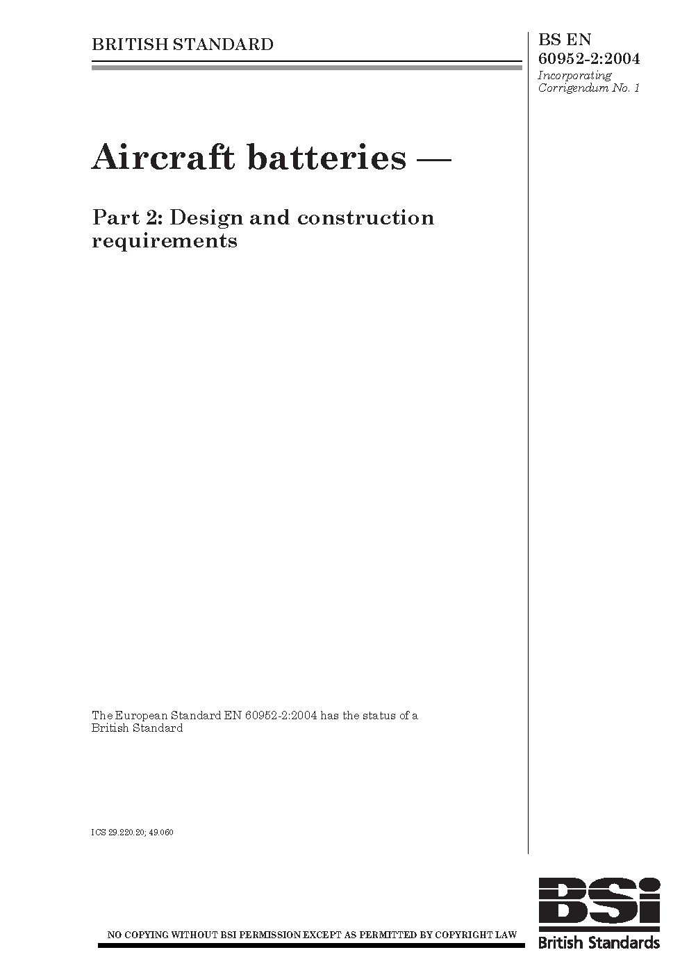 Ratings;Electrical safety;Lead-acid batteries;Nickel-cadmium batteries;Alkaline batteries;Electrical components;Electrical equipment;Electric cells;Marking;Dimensions;Hazards;Design;Ventilation;Electric connectors;Mass;Grades (quality);Performance;Aircraft components;Environment (working);Storage batteries