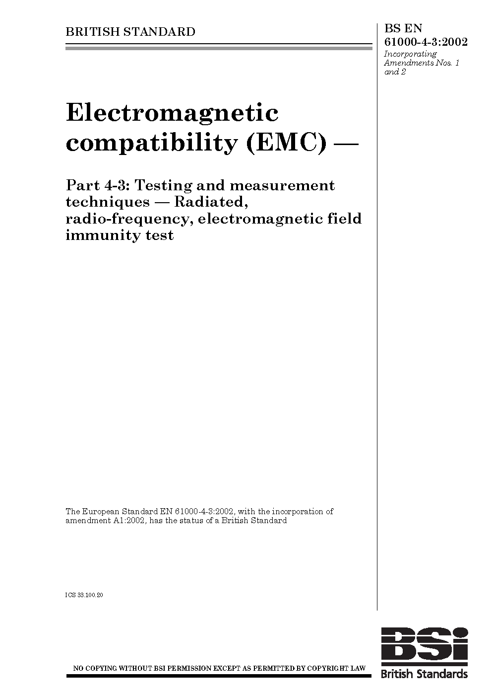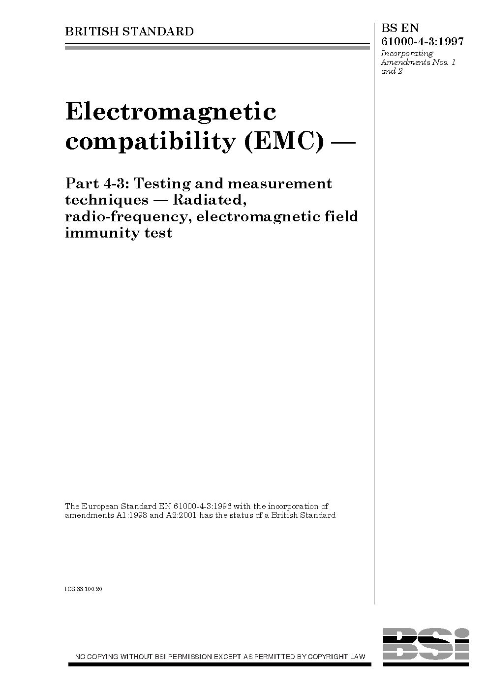BS EN 61000-4-3:1997