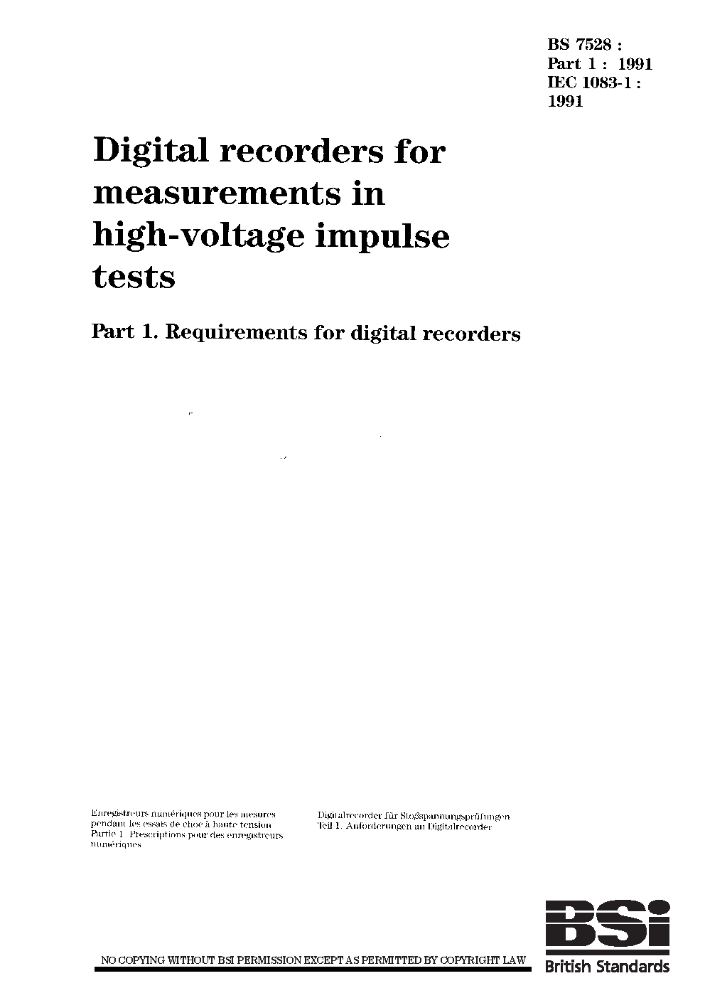 Digital recorders for measurements in high-voltage impulse tests Requirements digital
