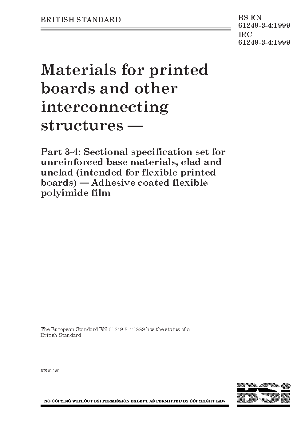 Materials for interconnection structures. Sectional specification set unreinforced base materials, clad and unclad (intended flexible printed boards) Adhesive coated polyimide film