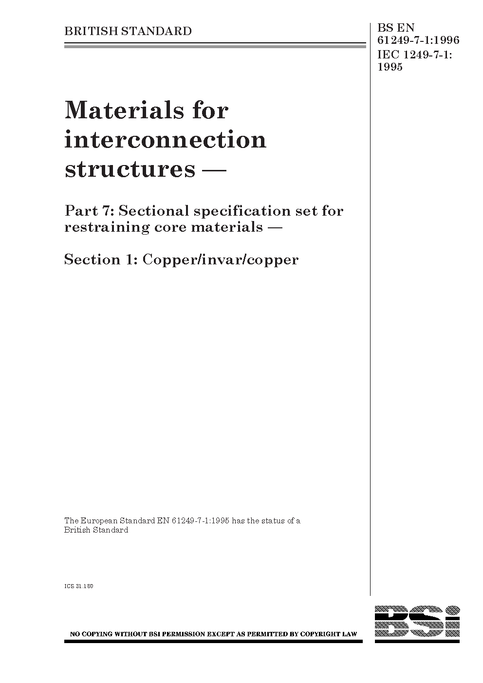 Materials for interconnection structures. Sectional specification set restraining core materials Copper/invar/copper