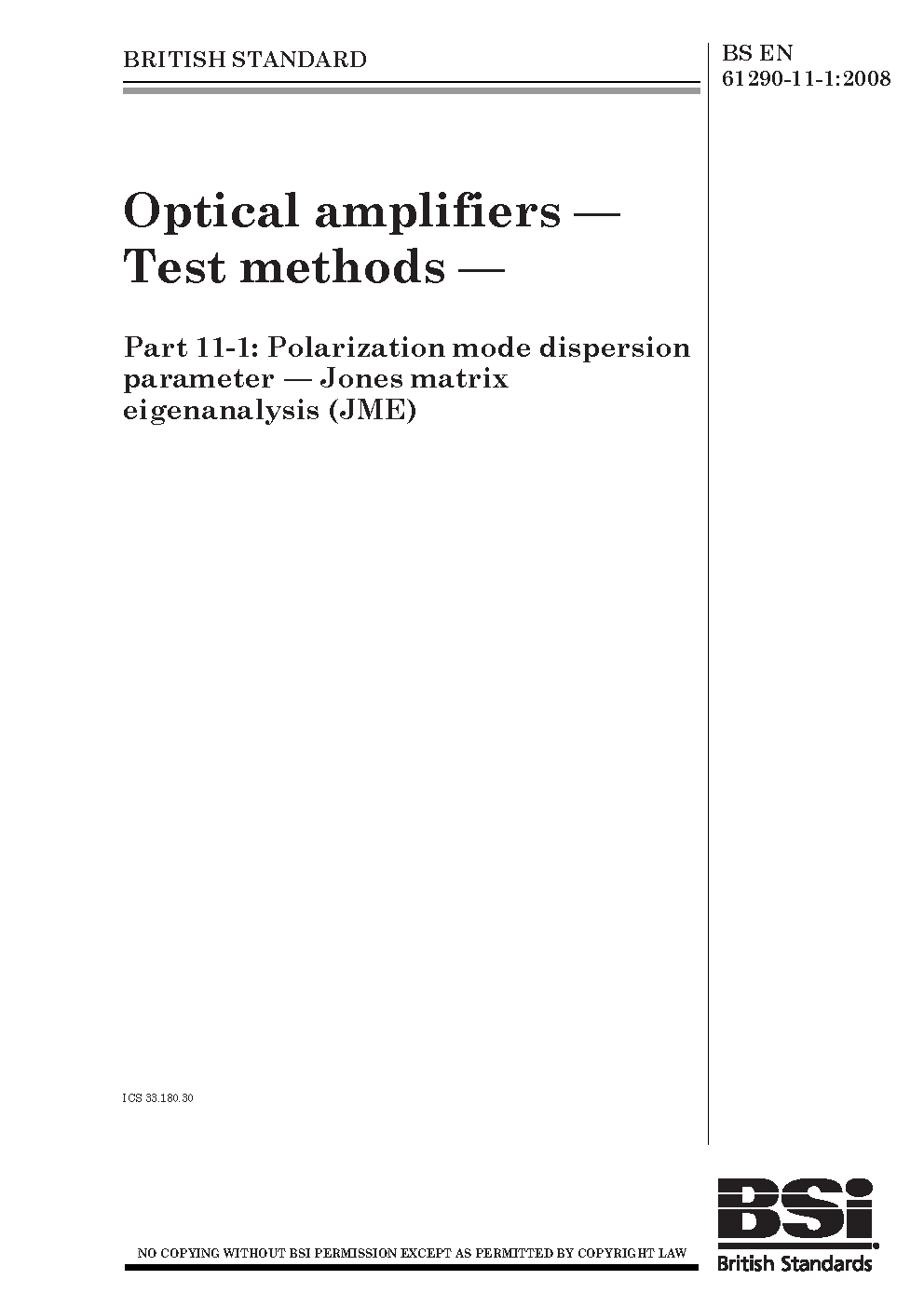 Optical amplifiers. Test methods Polarization mode dispersion parameter. Jones matrix eigenanalysis (JME)