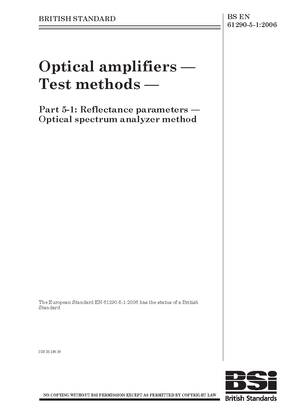 Optical fibre amplifiers. Basic specification. Test methods for reflectance parameters spectrum analyser