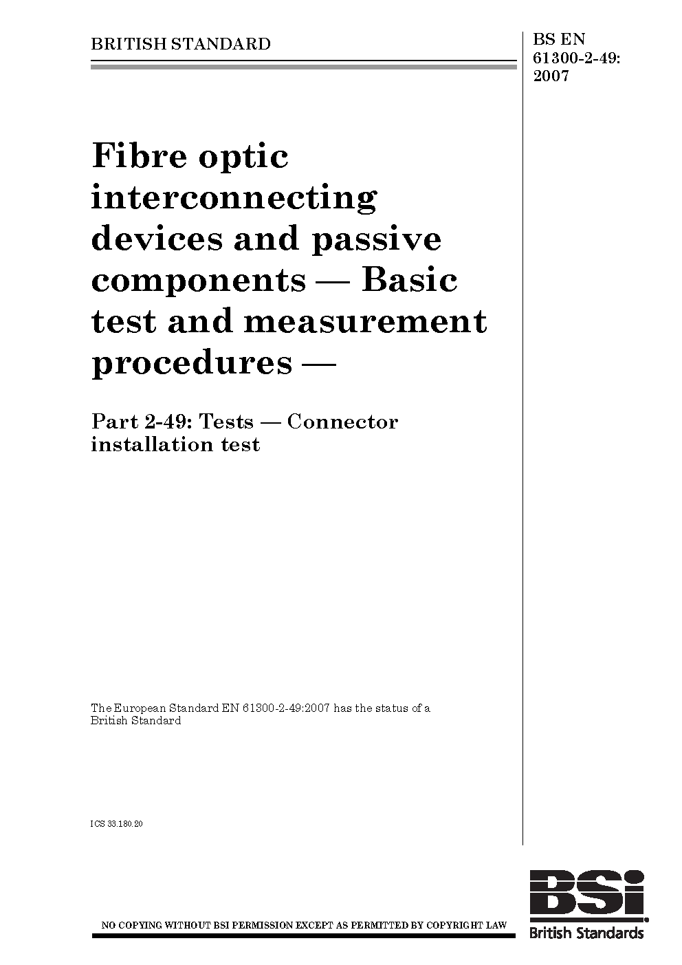 Fibre optic interconnecting devices and passive components. Basic test measurement procedures Tests. Connector installation