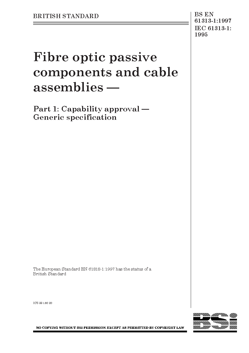 Specification (approval);Failure (quality control);Detail specification;Maintenance;Assessed quality;Electronic equipment and components;Capability approval;Fibre optics;Design;Approval testing;Classification systems;Acceptance (approval);Statistical quality control;Quality;Fibre optic cables;Identification methods;Fibre optic connectors;Inspection;Conformity;Quality assurance systems;Marking;Optical fibres